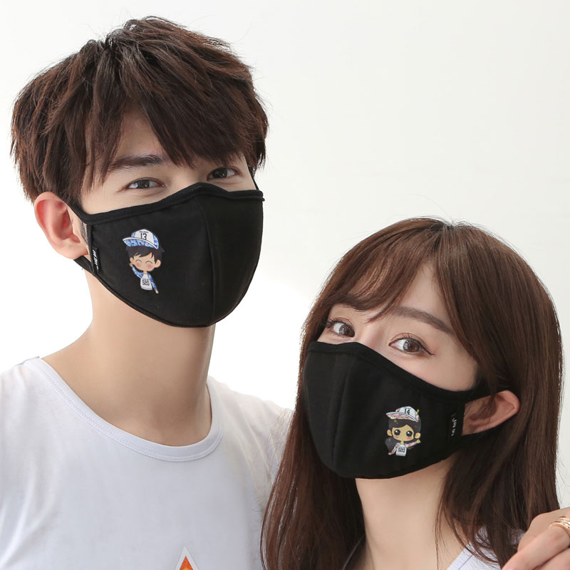 团购男女韩版纯棉可爱冬季个性防尘情侣口罩保暖透气黑色时尚潮款春 15元一共2个口罩 防尘个性时尚